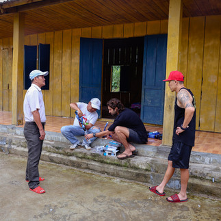 After unloading the various boxes of foods, donated items, school supplies, and our bags we were shown to our room (the teacher's lounge) and were introduced to all the school faculty, the other Vietnamese volunteers, and the village representatives. The common language here was "google translate".